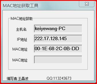 一、用软件提取:学院网络中心网站上为您提供了一个机器MAC地址提取小软件。下载地址是:http://nic.qzu.edu.cn/download/ip.exe 下载完成后,您只要运行它,以会出现如下的窗口: