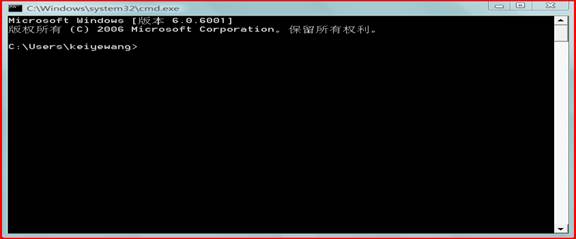 ①.点击[开始]-->>[运行],在运行窗口中输入三个字母:cmd,再按“确定”。弹出如下黑底的窗口: